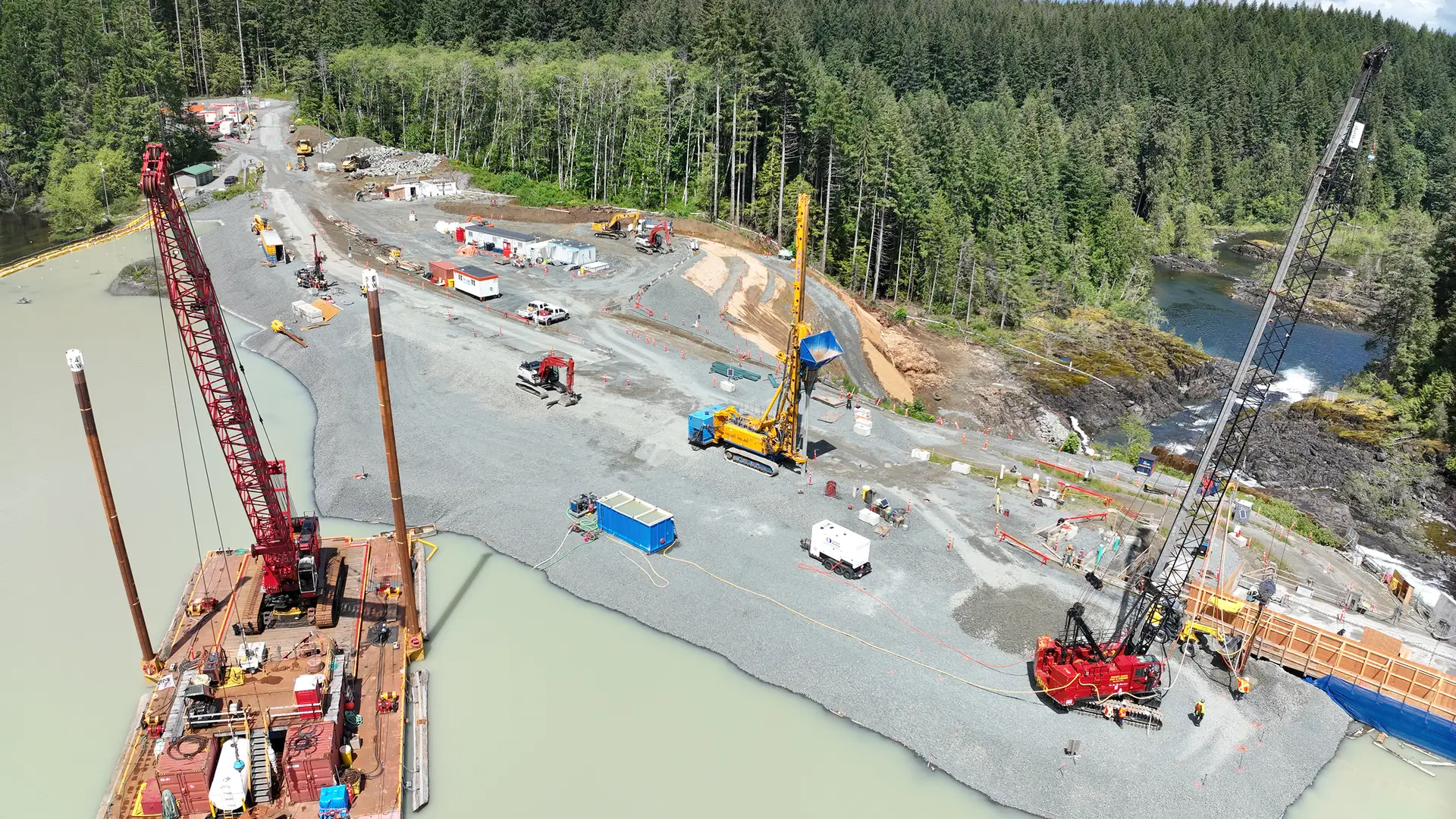 On the picturesque east coast of Vancouver Island, in the middle of the “Salmon Capital of the World”, Campbell River, BAUER Foundations Canada Inc. successfully carried out modernization work on the John Hart Dam. A plastic concrete cut-off wall was installed here to increase the seismic stability and ensure protection of the downstream communities. In addition to the cut-off wall work, our experts carried out soil improvement on soft sediments. This project is not only an integral component of power supply and flood protection, but also aims at safeguarding the reliability of the facilities. Despite wintry cold and tight working conditions, our team managed the construction tasks thanks to the latest methods and highly specialized equipment – including digital tools like b-tronic and the Virtual Site Installer.