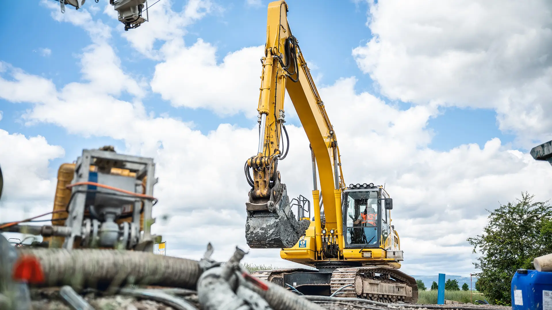 Over the course of eight months, the three drilling teams from Bauer Resources completed their work on seven geothermal fields for the installation of the geothermal probe system. More than 19,200 m were drilled and a total of 160 geothermal probes from GWE GmbH were installed up to a depth of 120 m. “The grouting work in later stages took a particularly long time, since considerable extra quantities were consumed in some areas. This required precise coordination between the different parties involved in the project,” explains Site Manager Raphael Werner from BAUER Resources GmbH, adding: “To ensure optimal quality for the backfill material in the boreholes, we used a specially developed, magnetically marked and thermally improved slurry. After completing the drilling work, we inspected the seal with a magnetic probe to ensure that it was executed properly – this is how we achieve optimal groundwater protection.” The excavation work for the pipe trenches began simultaneously with the drilling work. Then it was time for the most arduous task: The experienced team laid more than 10,000 m of pipeline. Finally, the connections were established and the trenches were backfilled with soil. To fulfil the strict quality requirements, all work steps were painstakingly documented, construction materials were carefully monitored and the lines were regularly subjected to pressure tests. “Thanks to precise execution, we were able to move forward rapidly with the project,” continues the Site Manager.