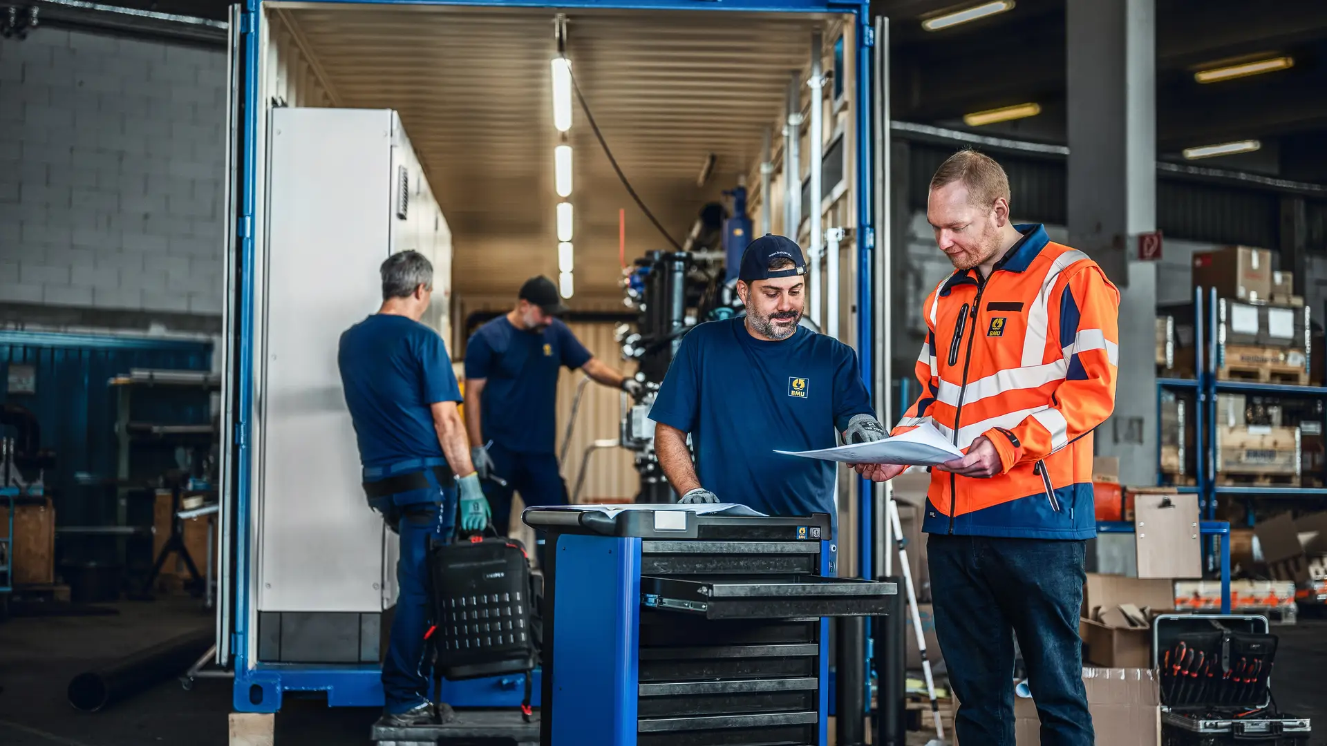 The team led by Site Manager Harald Huebner supervised the project from the start and took care of preparing the construction area on site. After construction of the floor plate, the groundwater treatment plant was brought to the site in more than 15 truckloads. After arriving at their destination, the equipment components were lifted to the defined setup area using a 100-ton crane. Step by step, the various equipment components were then positioned: The filters were filled with gravel and activated carbon, the well pumps were installed, and pipes and wires were laid for the entire plant. In November 2024, it was finally time: The plant began operation. To celebrate this milestone, a press event was also held to inform the public and the media about the project.