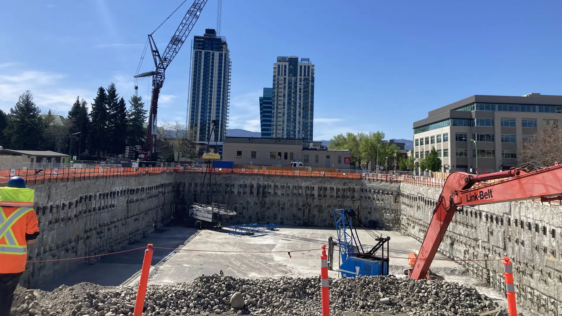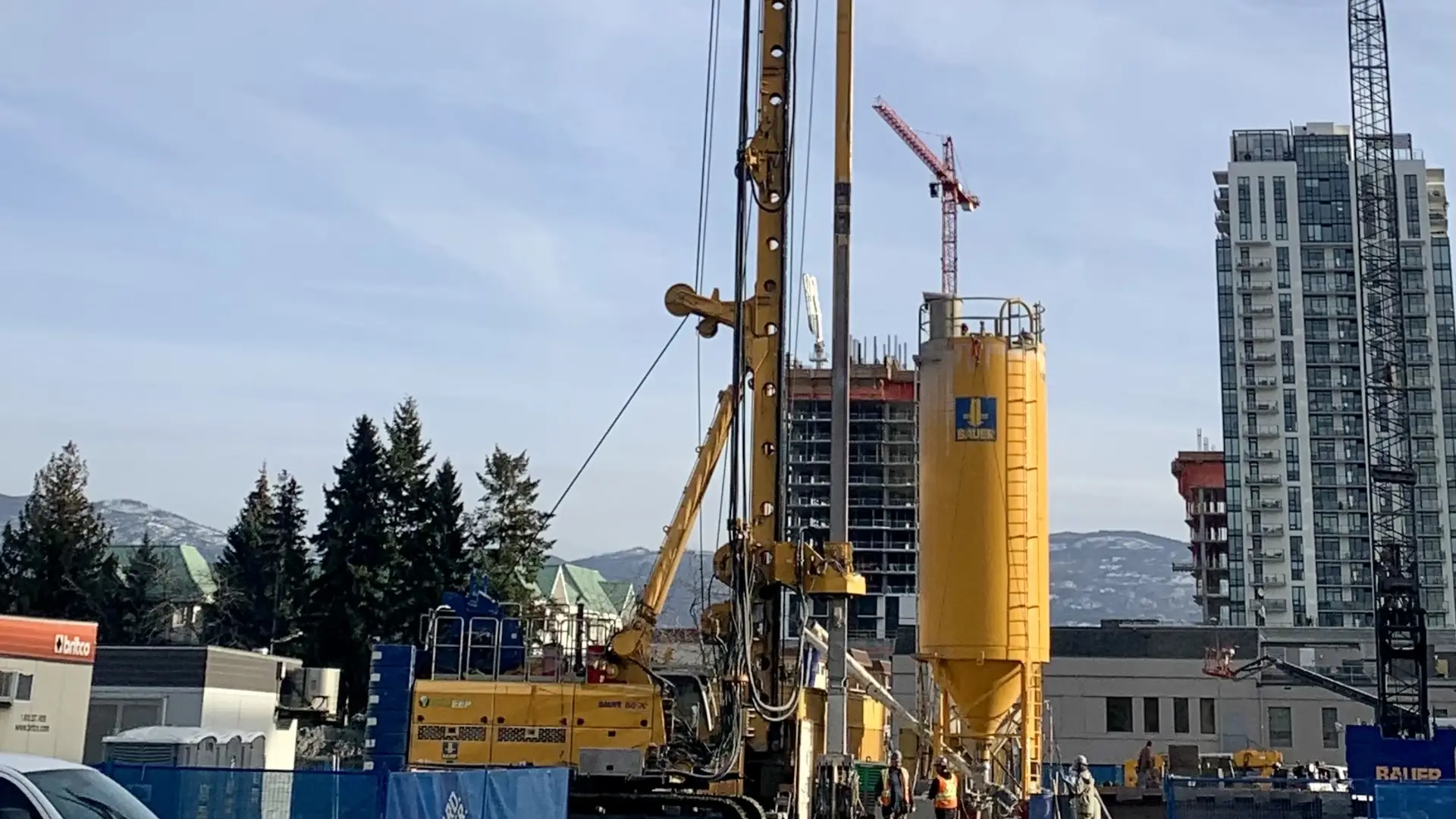 Bauer Foundations Canada were awarded the construction of a temporary Cutter-Soil-Mixing (CSM) shoring and Cut-off-wall to support the excavation for underground parking at the new UBC Kelowna campus. The new downtown state of the art education facility and student housing will stretch 43 stories high. A total of 110 cutter soil panels were installed to a depth of 30 m to retain the surrounding soil and prevent water from entering the construction site. Ground conditions on the site were challenging with loose lake deposits and a high-water table. Timber piles from a previous building created challenges during installation and were removed to prior to continuing installation of the CSM wall. Commitment to quality: Experts to overcome obstacles.